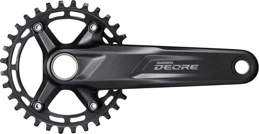 The Shimano Deore FC-M5100-1 mountain bike crank ensures accurate and dependable shifting for 1x10 or 1x11-speed drivetrains. Its 2-piece design enhances crankset rigidity while reducing weight, ensuring efficient power transmission with each pedal stroke.